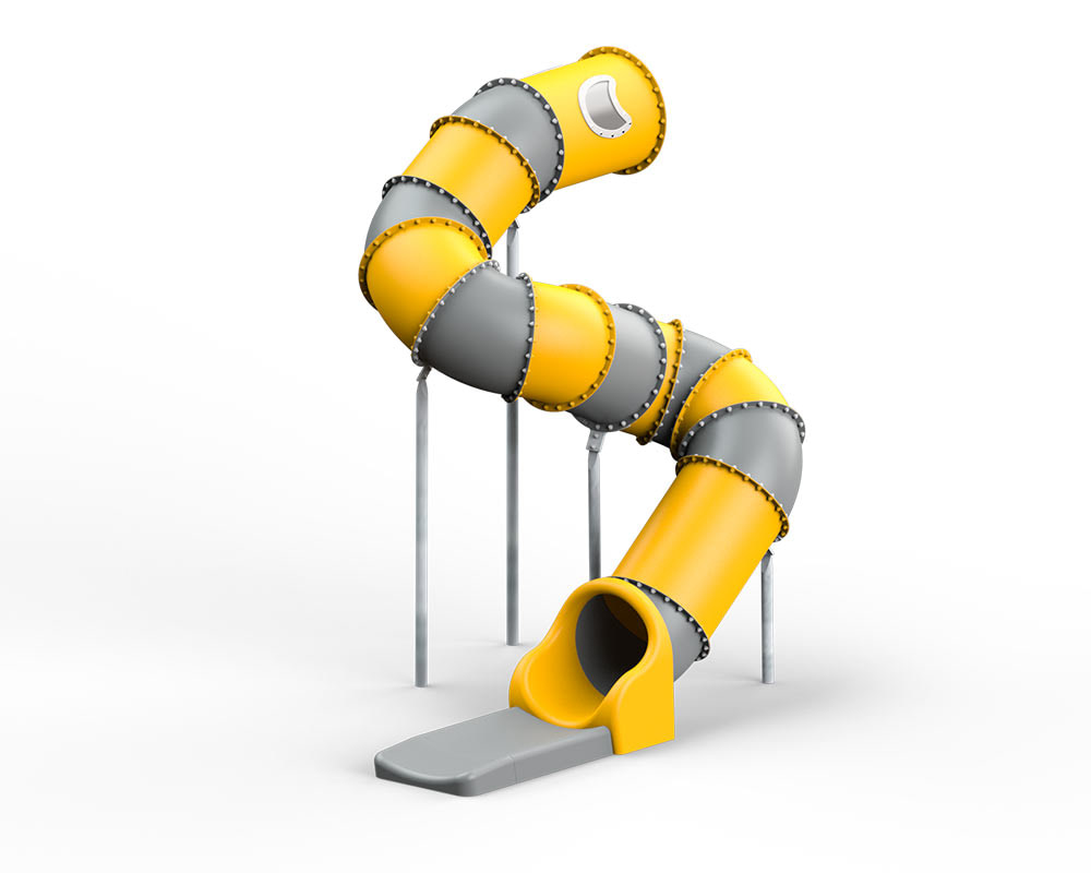 Unsere Röhrenrutschen sind in einer breiten Auswahl an Farben, Größen und Formen erhältlich. Darüber hinaus sind auch zahlreiche Details sowie zusätzliches Zubehör lieferbar. Dieses Modell zum Beispiel hat ein Fenster auf der Oberseite der Röhrenrutsche, um mehr Licht hineinzulassen, wenn die Kinder sich in Position bringen. Ein Fenster – oder gleich mehrere – ist bzw. sind eine gute Idee für Röhrenrutschen mit Spiralen, weil anders als bei geraden Röhren kaum Licht von unten einfällt.