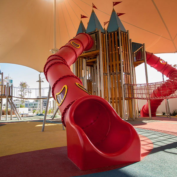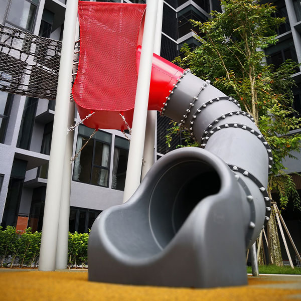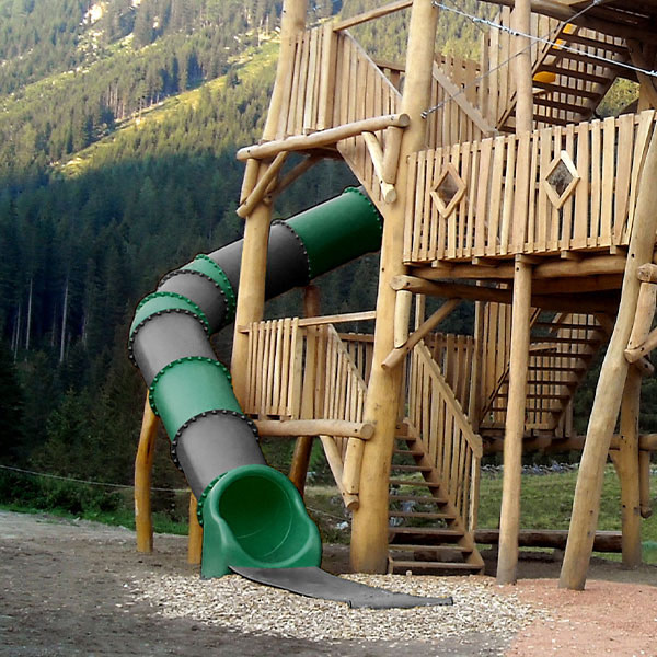 En tunnelrutsjebane med sving kan være meget alsidig, da vi kan designe tunnelen til at dreje i næsten hvilken som helst retning, I måtte ønske jer. Et design med sving er godt til legetårne på legepladsen, da de, til forskel fra en lige tunnel, ikke stikker for langt ud og samtidig kan have en højere starthøjde. En tunnelrutsjebane med sving er en sjov tilføjelse til enhver struktur, som står og mangler ekstra legeværdi og et opsigtsvækkende designelement.