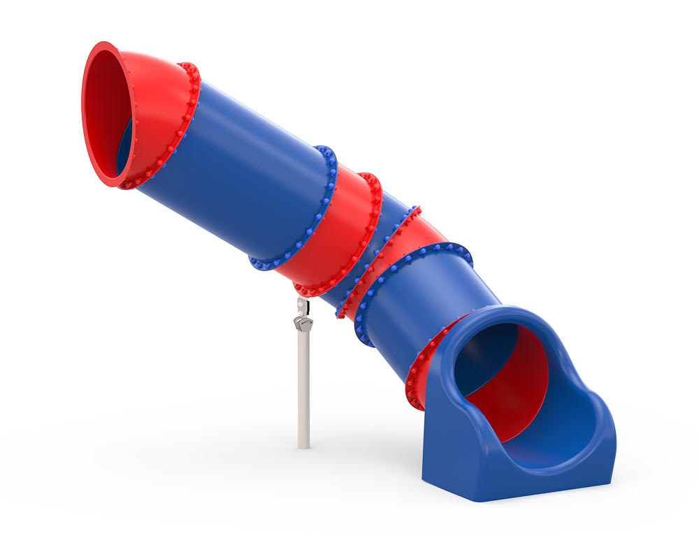 A tube slide with curves can turn in almost any direction. They are great for twisting around play towers or other structures, which makes them a good space-saving solution.