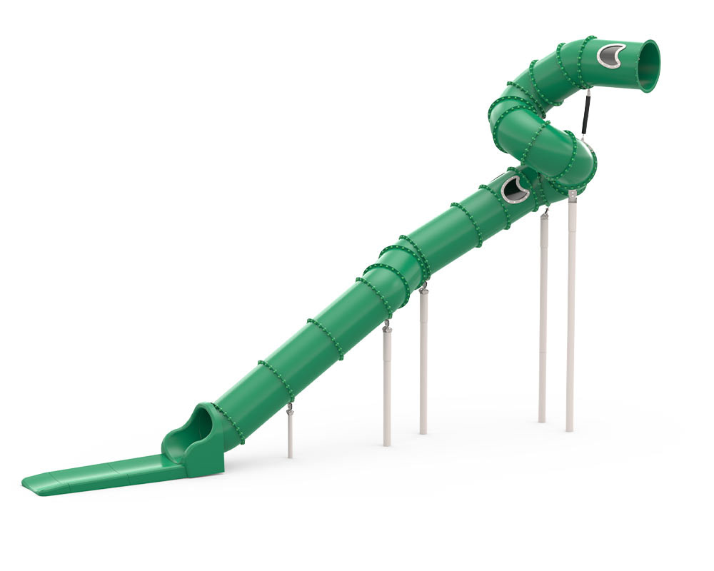 This model has an impressive start height that children will immediately find appealing. The high start height encourages children to challenge themselves, which is a healthy and important aspect of play and development. This tube slide is also a good example of how a combination of spirals, curves and straight sections makes it possible to achieve a high start height, creating an experience that is both fun and memorable.