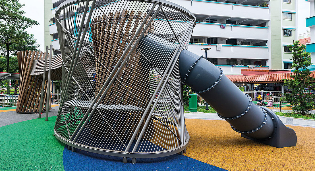 One of Singapore’s residential districts has a new recreational area that has made the local neighborhood more attractive. The area includes a modern and eye-catching playground, where one of our tube slides adds extra play value to the existing play system. The tube has been specially designed for this particular playground, and its shape is therefore completely unique.