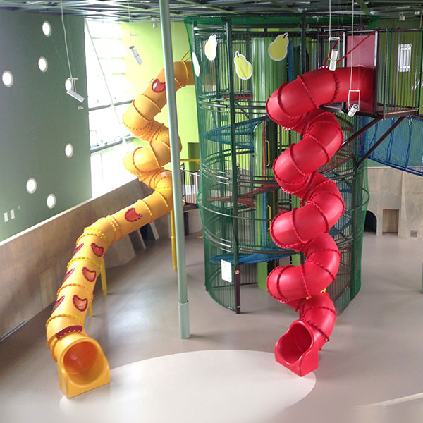 The spiral tube slide is also often used indoors in shopping centres, educational establishments or office buildings. Again, its space-saving design makes it attractive for indoor use, as there is often not a lot of space available. Here the tube slide serves as an alternative to the stairs. The tube slide often extends from one floor to another. In indoor environments, the spiral slide is extra eye-catching and adds a playful element to the interior design.