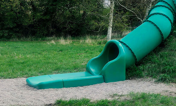 If you want a complete tube slide from us, a start panel and an exit will always be a necessity. However, it may vary which start panel is needed and how long the exit needs to be. The design of the start panel will depend on whether the tube slide is to be attached to a play tower or other structure, or whether it is free-standing, for example as an embankment slide. For slides with low slide speed and short slide length, an ordinary exit may be enough, but, for certain designs and high start heights, our exit extension will be required to comply with EN 1176. If you prefer a longer exit than required by the safety requirements, it is always possible to add an extension.