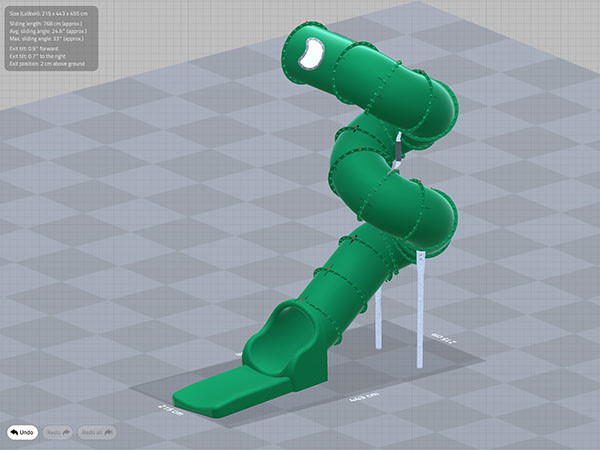 It can be difficult to imagine exactly what the tube slide will look like. We therefore design your tube slide for you in our SlideMaker program, which can construct a 3D tube slide model. A 3D tube slide visualisation is completely free of charge and non-binding.
